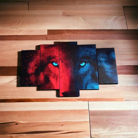 Cuadro Decorativo Lobo rojo y azul